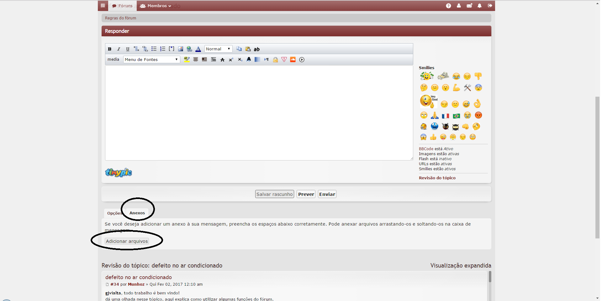 gjvialta, para adicionar imagens, videos etc. Escolha a opção "Anexos", abaixo da caixa de digitação, depois escolha a opção "Adicionar arquivos".
