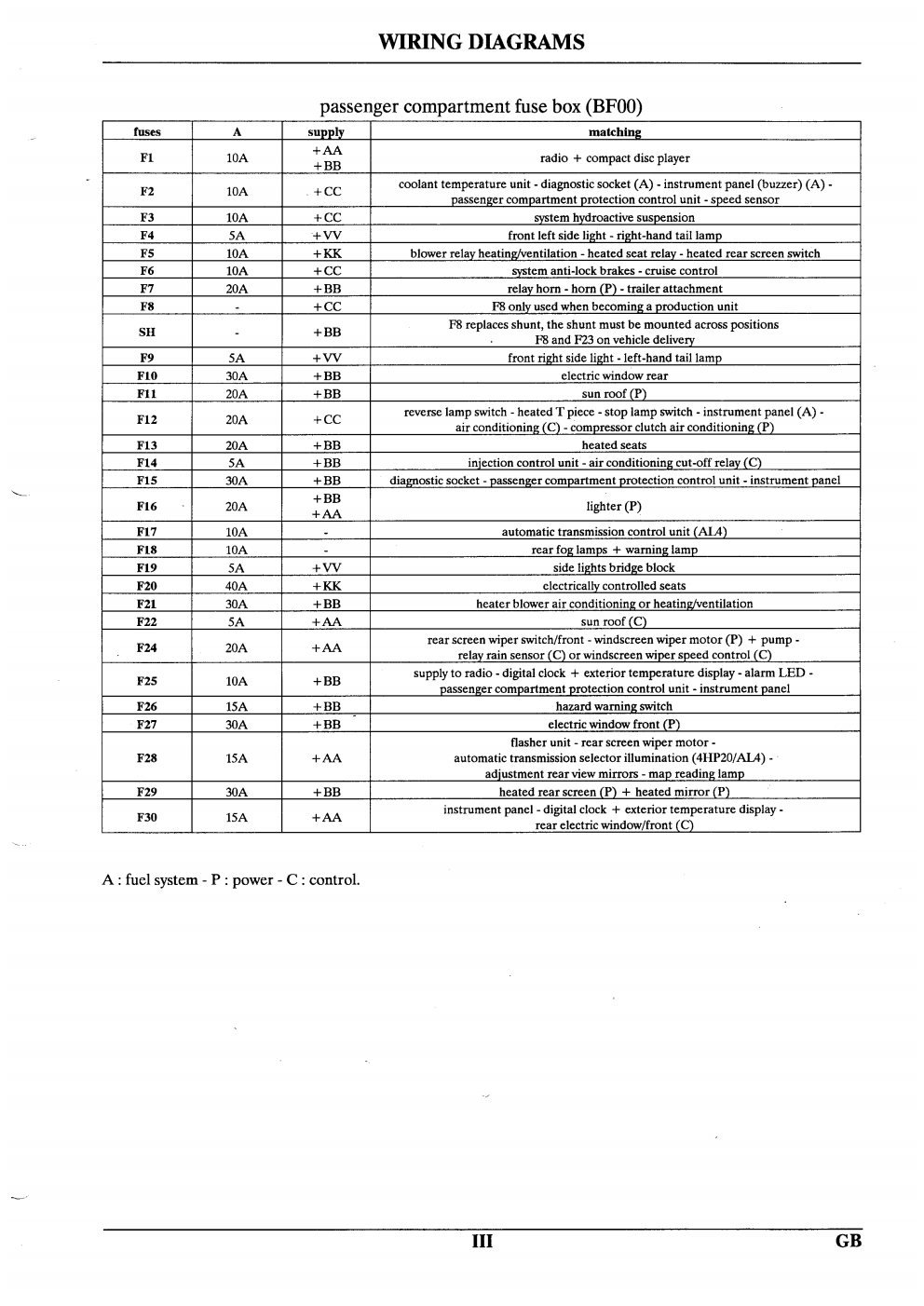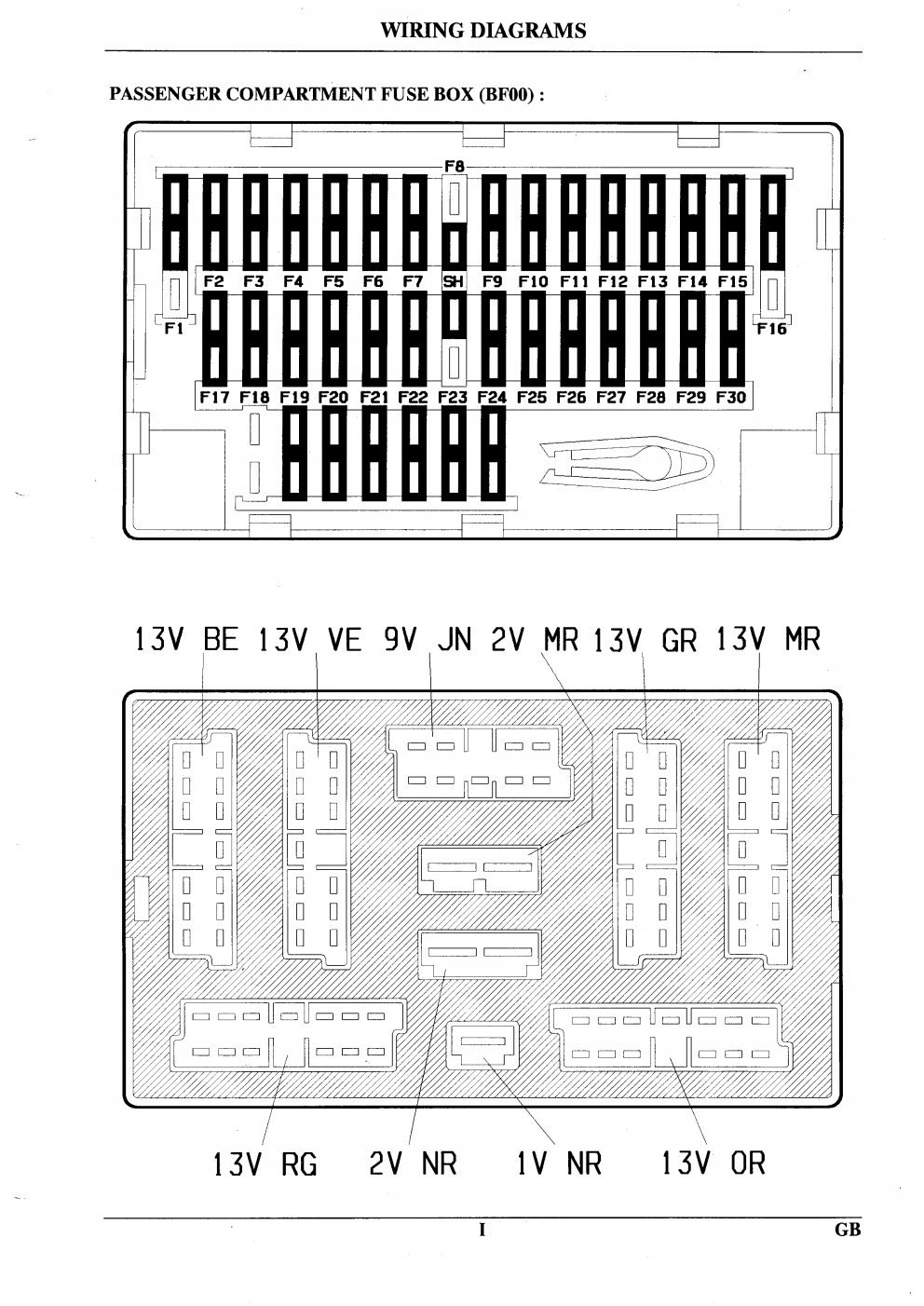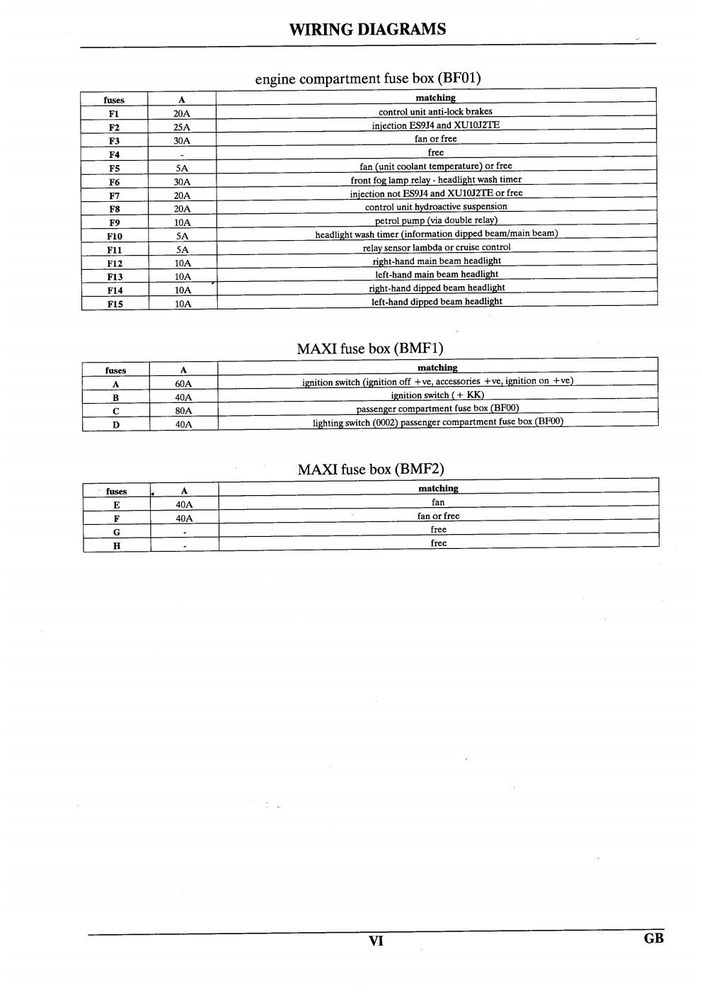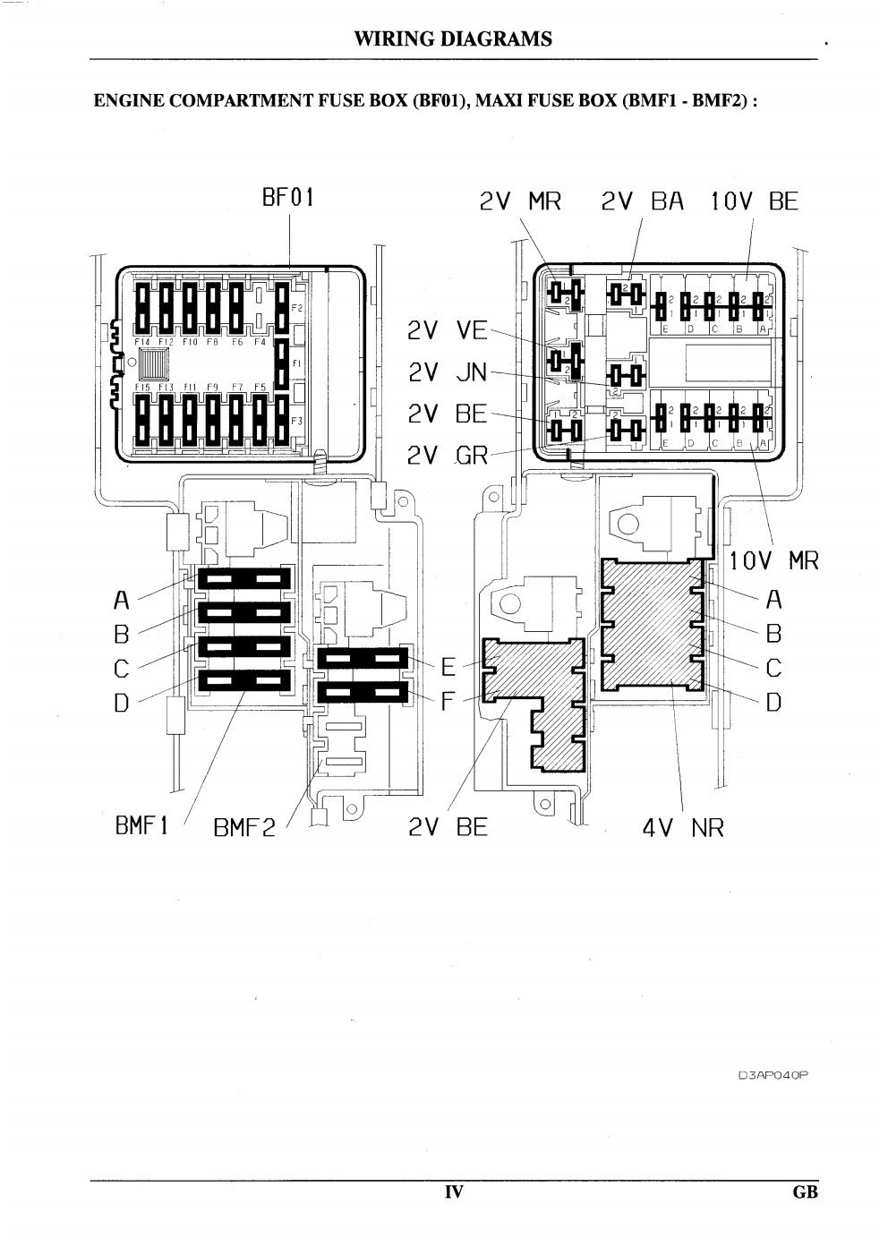 Os diagramas abaixo molstram em detalhes a caixa de fusivel do cofre do motor (mencionada nos diagramas da Citroen como BF01) e a caixa de fusiveis que fica embaixo do volante (Mencionada como BF00)