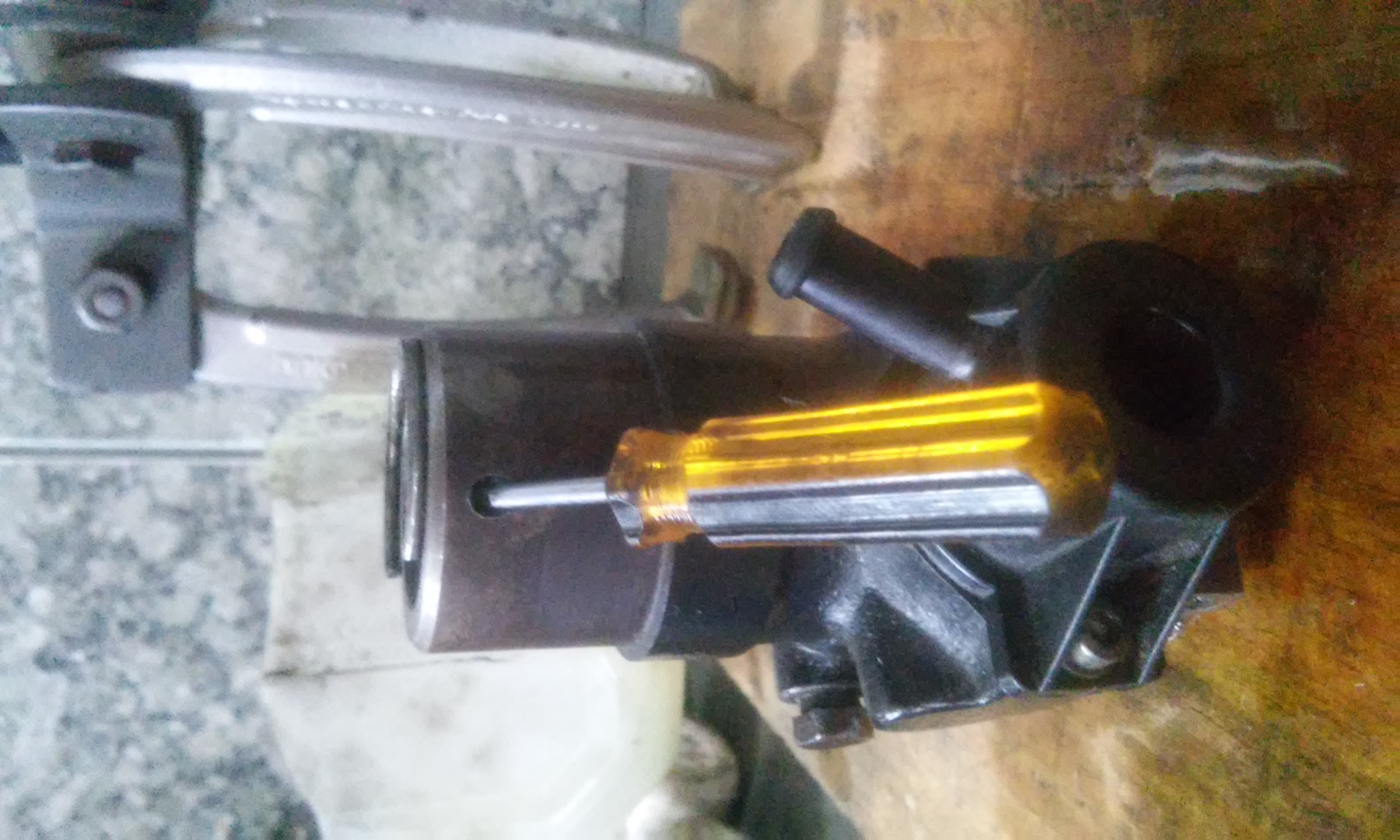 3 - Retirada a trava com o auxilio de uma chave de fenda fina, alivio a pressão do saca-polia e tudo se mostra;