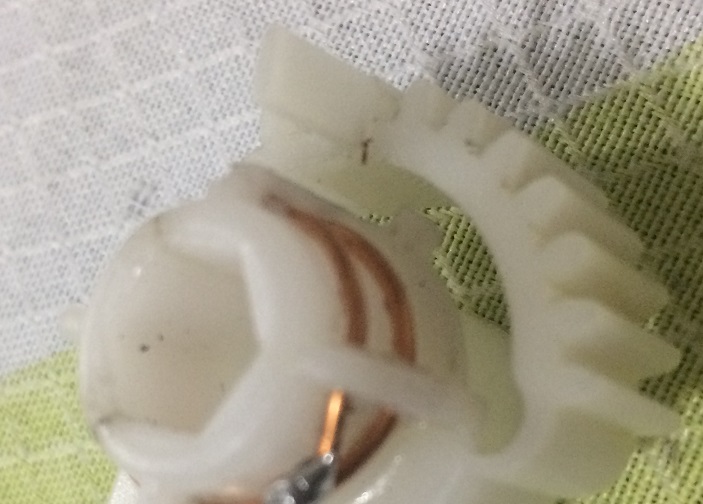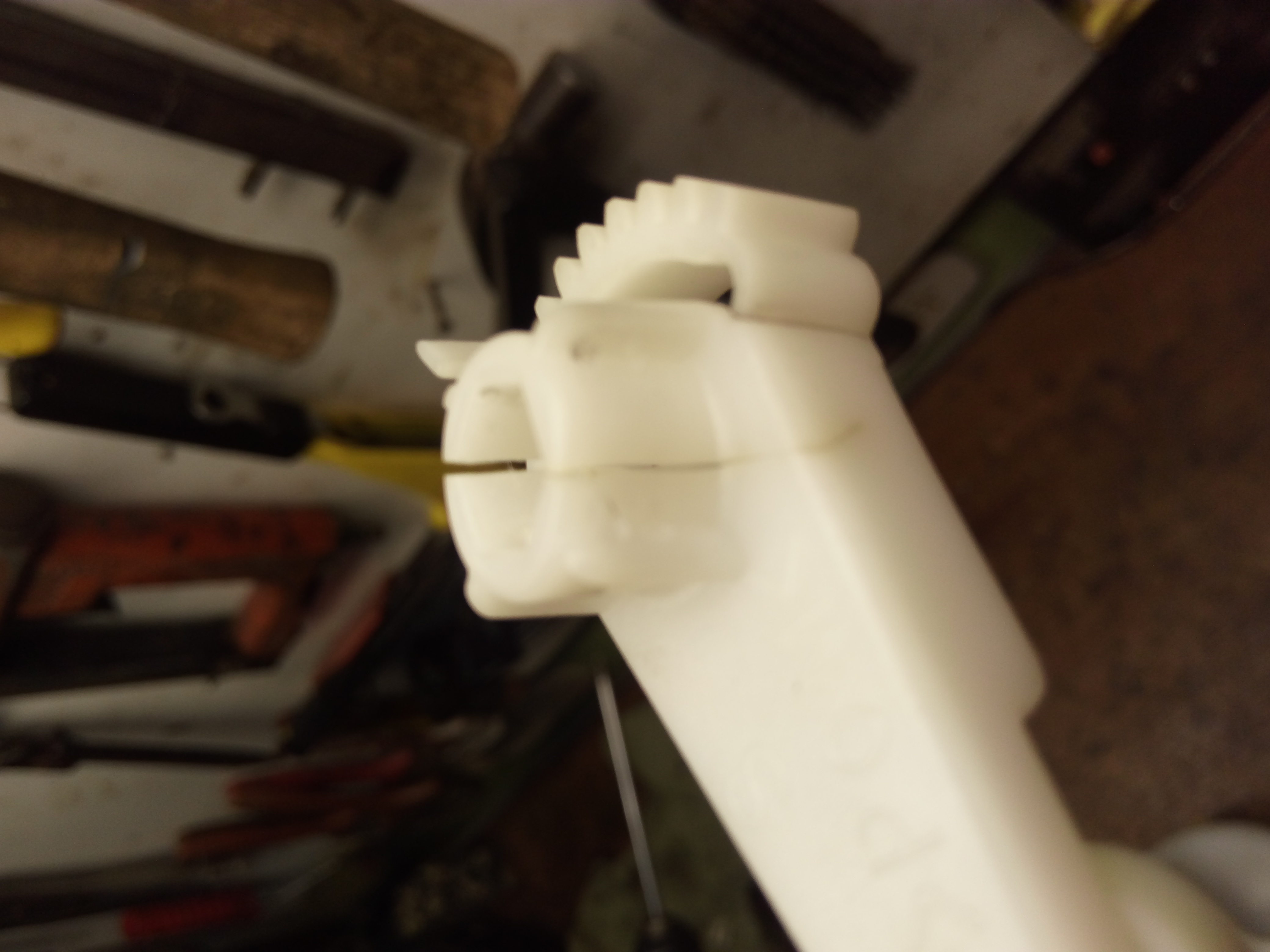 O braço articulado sai mais facilmente por cima. Por baixo é mais difícil. Ele está atrás de um dos dutos do sistema de climatização, do ar condicionado. Não tem erro na reposição. As engrenagens só funcionam se estiverem conectadas em uma posição. Vai ter que fazer mágica para montar em posição diferente. Atentar para o sincronizador delas, que é também de plástico e tem aparência frágil. Ver figura abaixo.