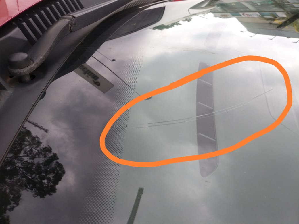 Estava viajando e bateu uma pedrinha. Ainda bem que o seguro cobre a substituição desse parabrisas!