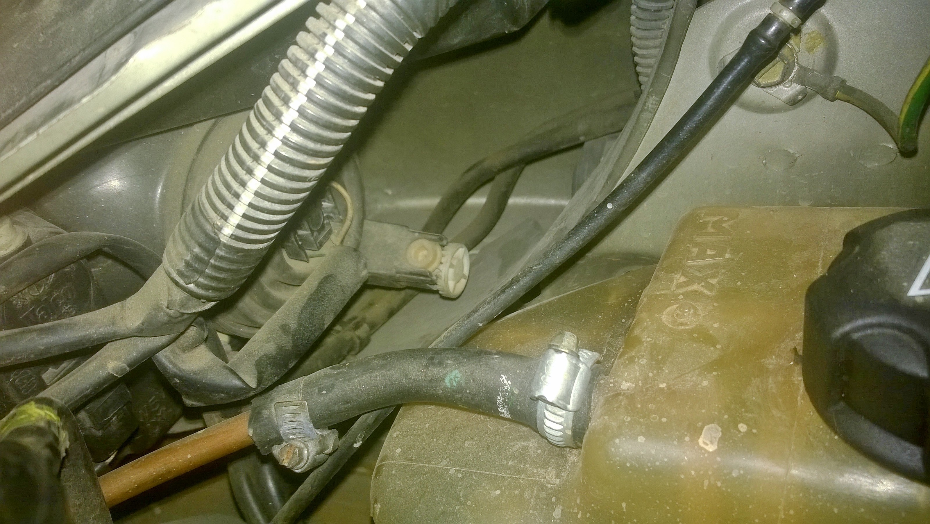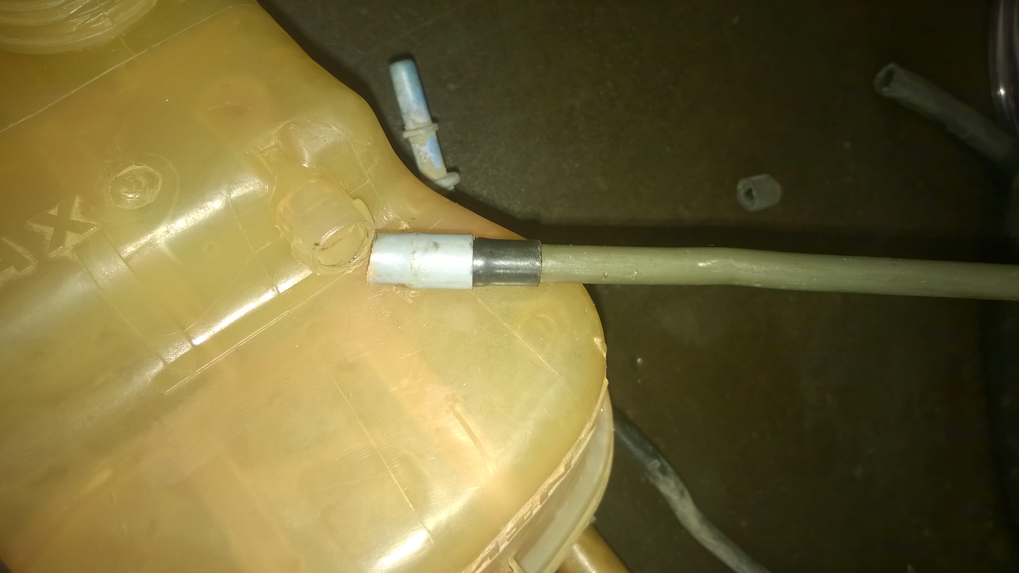 Meu mecânico retirou a mangueira ressecada (foto post anterior) e inseriu um tubo de cobre Diâm. 1/2" numa mangueira de borracha na linha que sai do Reservatório de Água para o Radiador. Isto selou totalmente contra vazamentos ou entrada de ar.