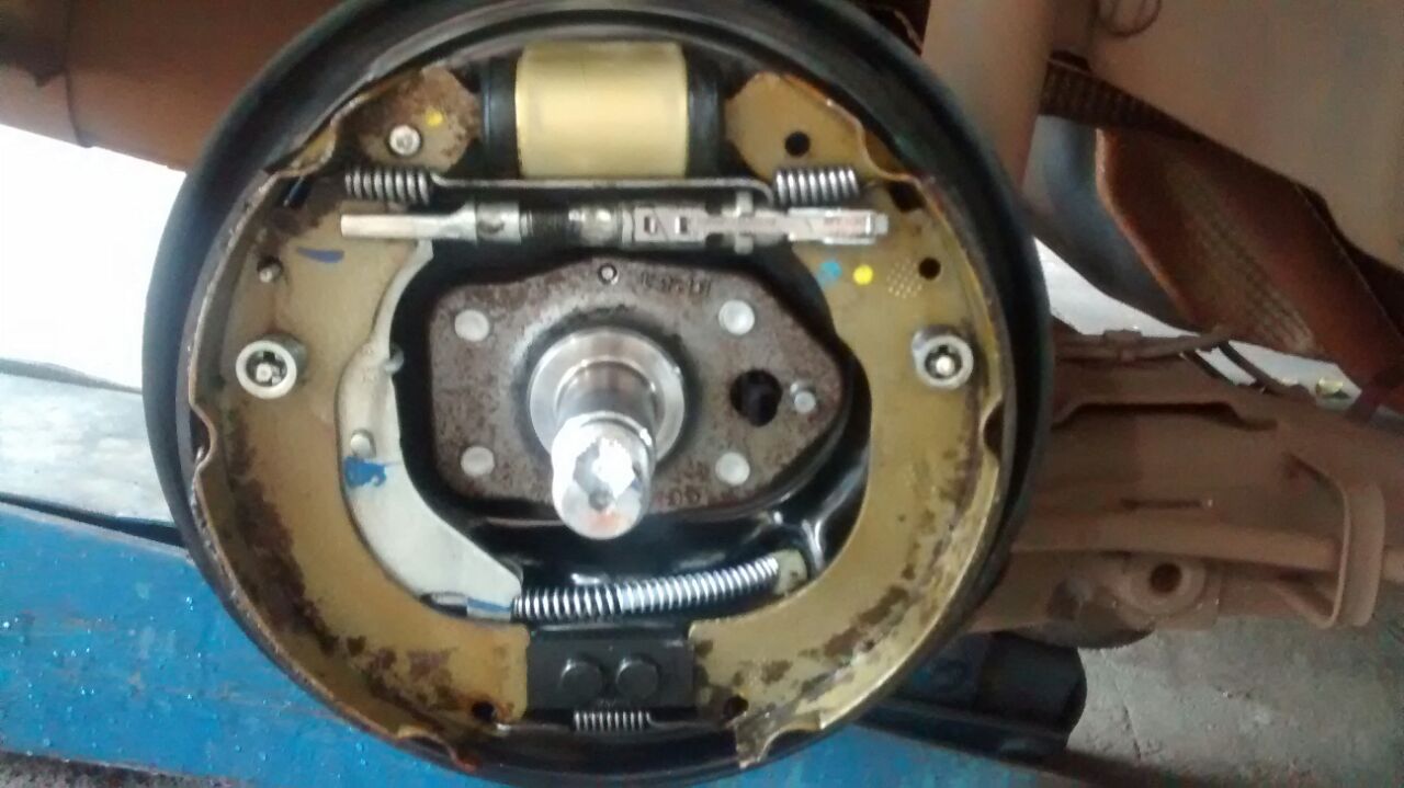 Agora como ficou o serviço, rapaz bem caprichoso, limpou o tambor e ate passou uma graxa na sede das sapatas para evitar aquele barulho de freio chato, sem excessos para nao correr o risco de escorrer e comprometer a frenagem!
